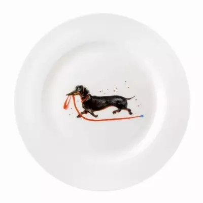 I love this dear little dog, the Dachshund it's one of my favourite breeds, this one wears a red collar and carries a red lead, all ready for his favourite walk.